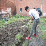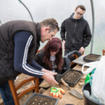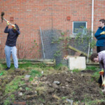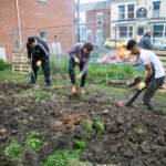 We had the group of young people from Betaris again helping out at our allotment at St James City Farm. It was a really productive morning – most of the time was spent digging the foundations of our new wheelchair friendly raised bed – a job that has been in the planning for ages, we’ve just been waiting for the muscle to get it started. So that’s been a huge help to us. The group also were involved in some seeding and planting, and most exciting of all, getting a fire going to get rid of our waste wood.