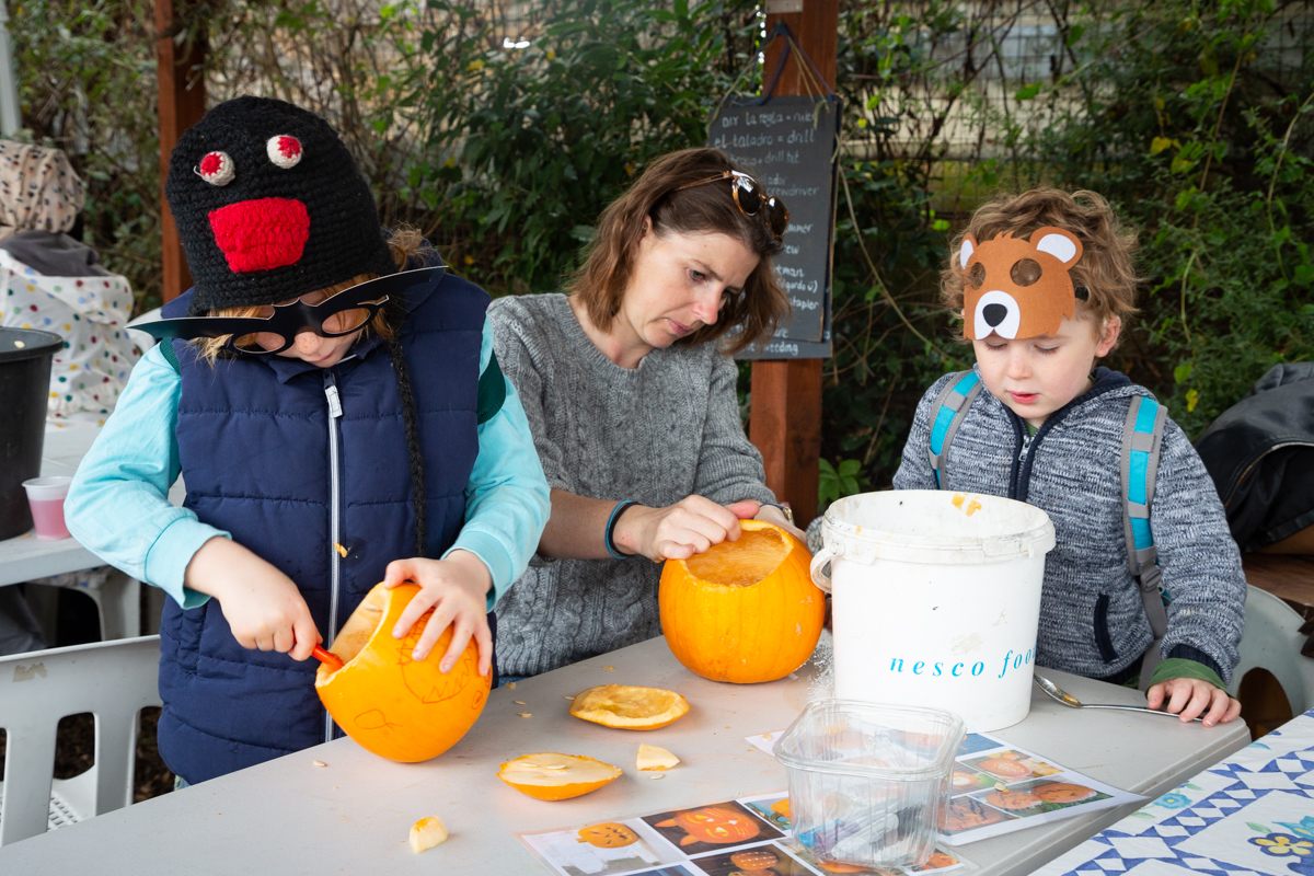 We had a thrilling time down at our allotment as we bust out the sharpies, spoons and knives. Lots of families joined us and got cracking with creating their own personal pumpkins with all kinds of terrifying designs fit to grace their porches and windows. As always the adults were put hard to work turning the various doodles into actual carvings, and we think everyone did an excellent job.