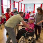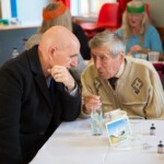 A team of helpers decorated and set up the hall, including three young people from Open House. The Fair Shares mini bus was busy picking up people from Cotswold House care home, while participants and volunteers helped with transport from Wyatt House care home. Fair Shares members from Stonehouse and Stroud pulled crackers with those invovled with organisations working alongside Fair Shares: including the Museum in the Park, Stroud District Council, NHS 2gether Trust, the Alzheimer’s Society, Gloucestershire County Council, Barnwood Trust and others.